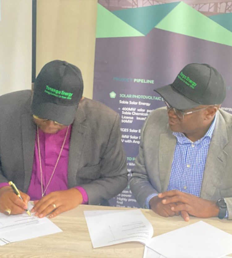 The Bishop of the Manicaland Anglican Diocese signing an MoU with Tatanga Energy’s CEO.